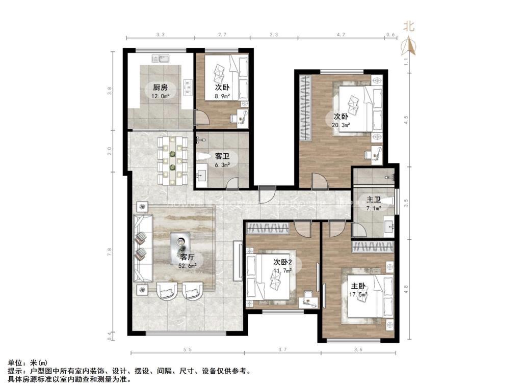 厅室4室2厅1卫1阳台