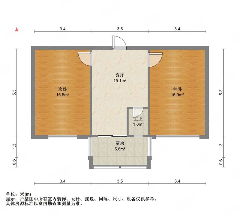 厅室2室1厅1卫1阳台