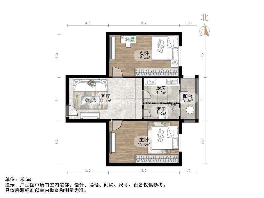 厅室2室1厅1卫1阳台