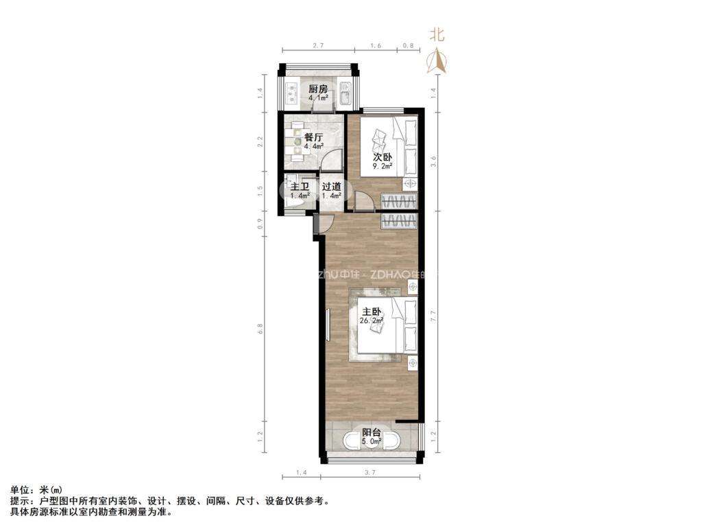 厅室2室1厅1卫2阳台