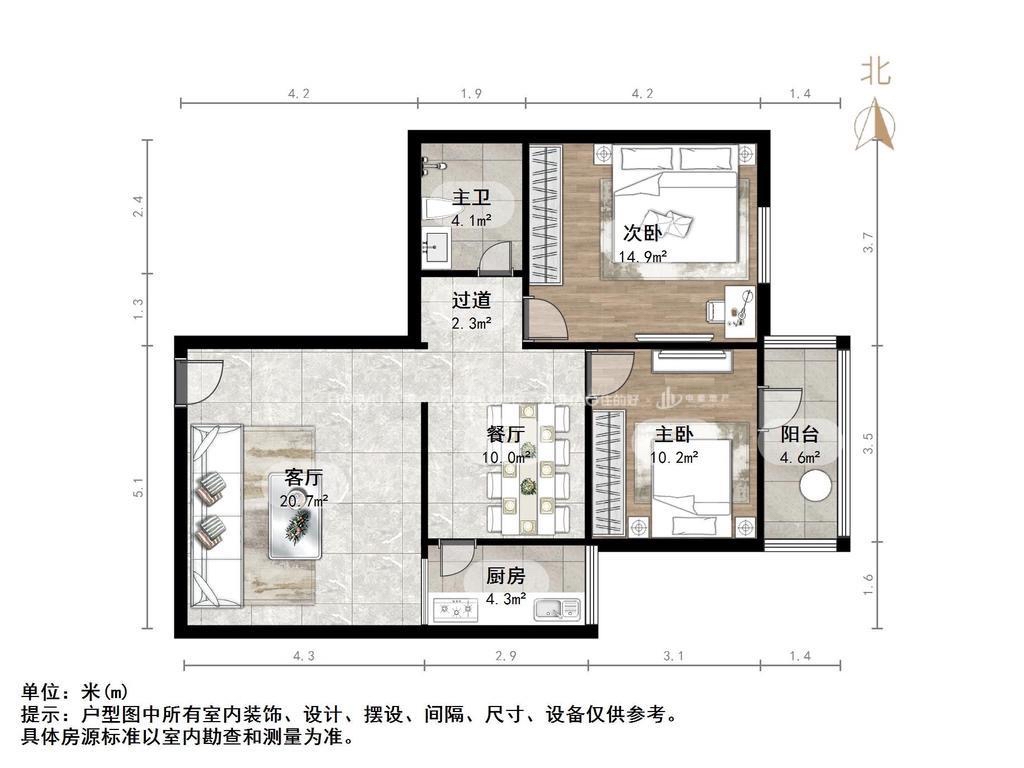 朝向南北 建筑面积98㎡