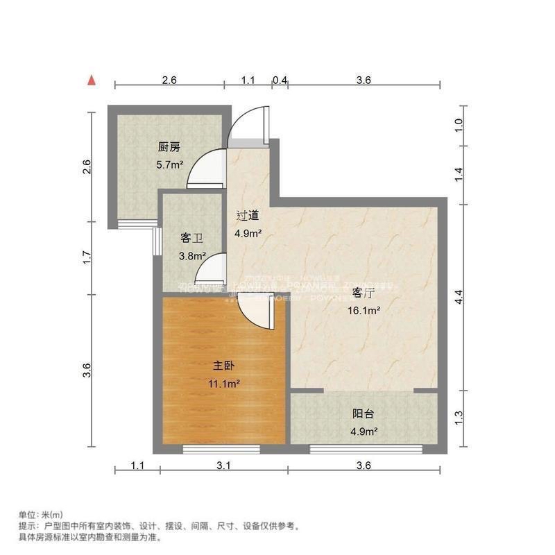 厅室1室1厅1卫1阳台