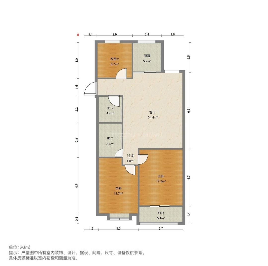 厅室3室2厅1卫1阳台