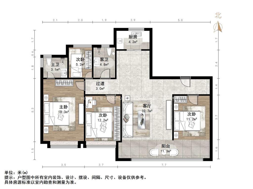 朝向南北 建筑面积162㎡