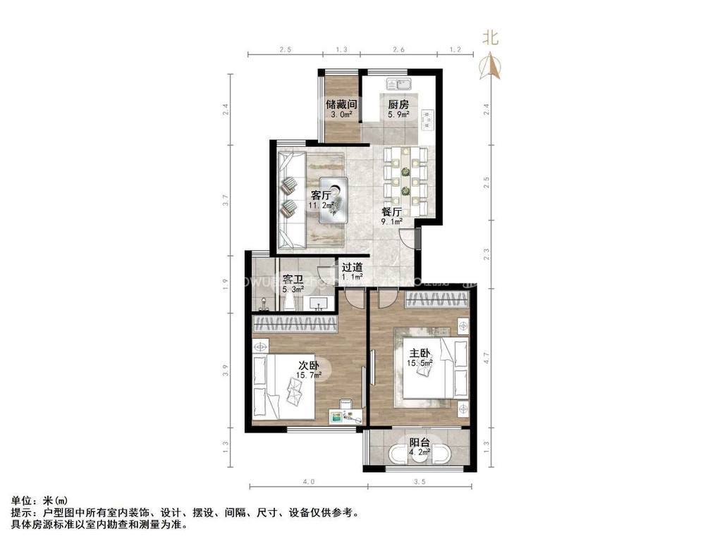 厅室2室2厅1卫1阳台