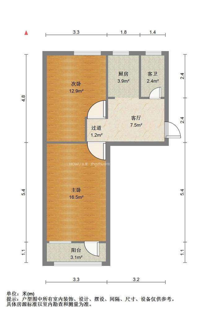 厅室2室1厅1卫1阳台