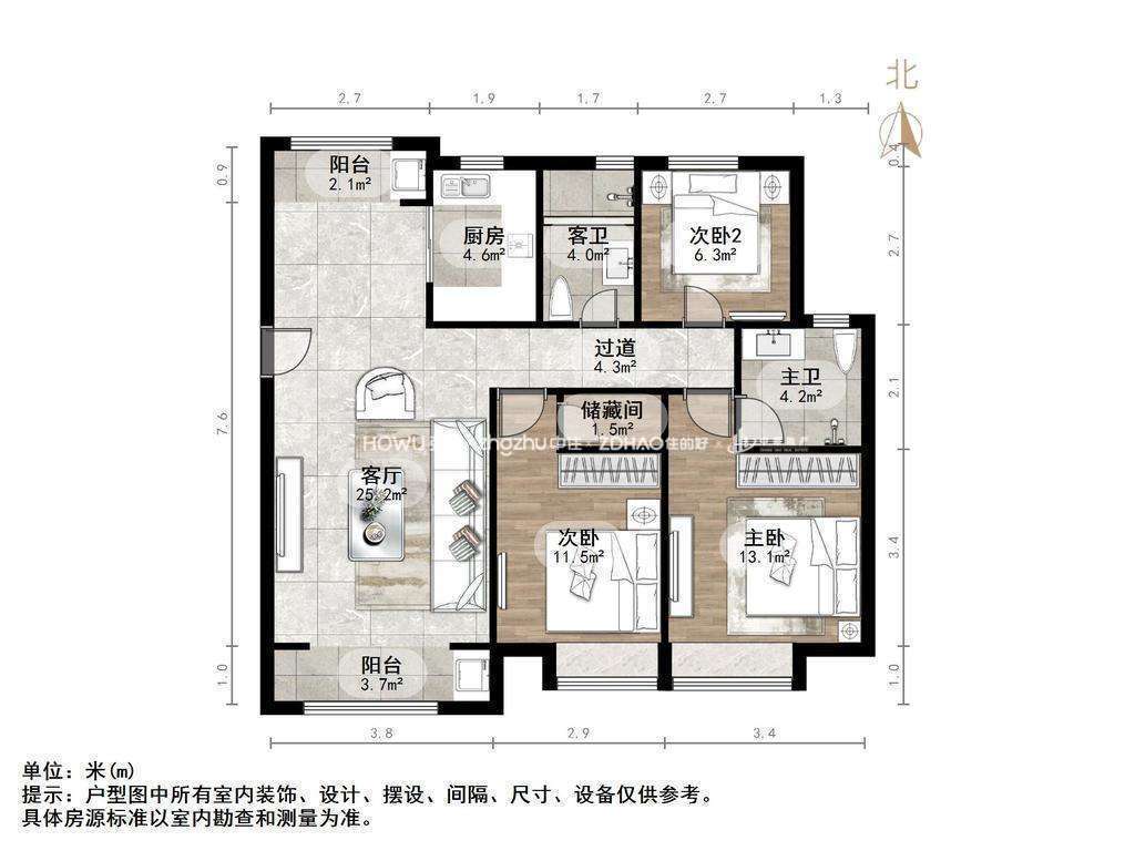厅室3室2厅2卫2阳台