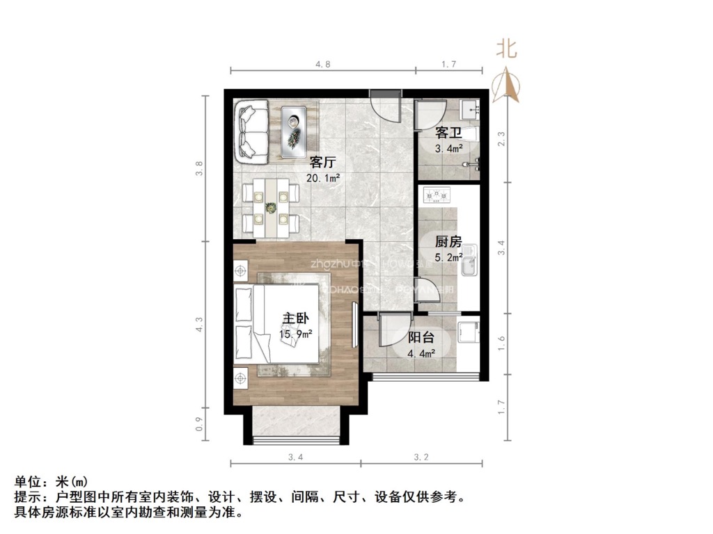 厅室1室1厅1卫1阳台