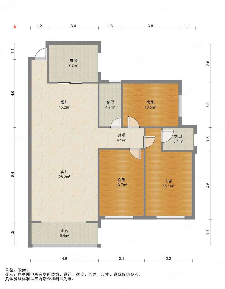 厅室3室2厅2卫1阳台