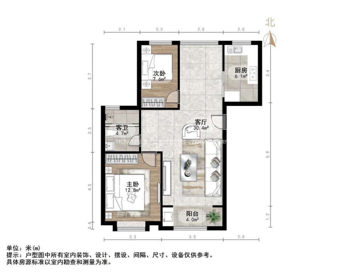朝向南北 建筑面积90㎡