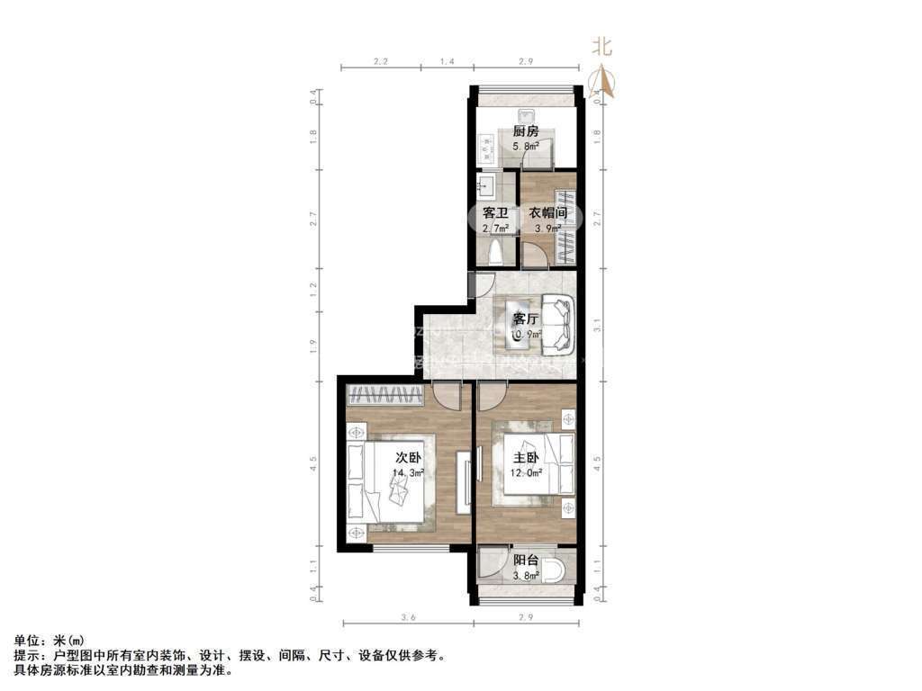 朝向南北 建筑面积68.71㎡