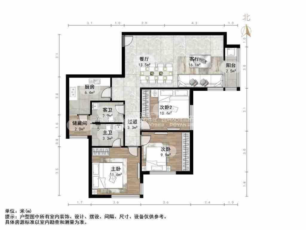 朝向南北 建筑面积116㎡
