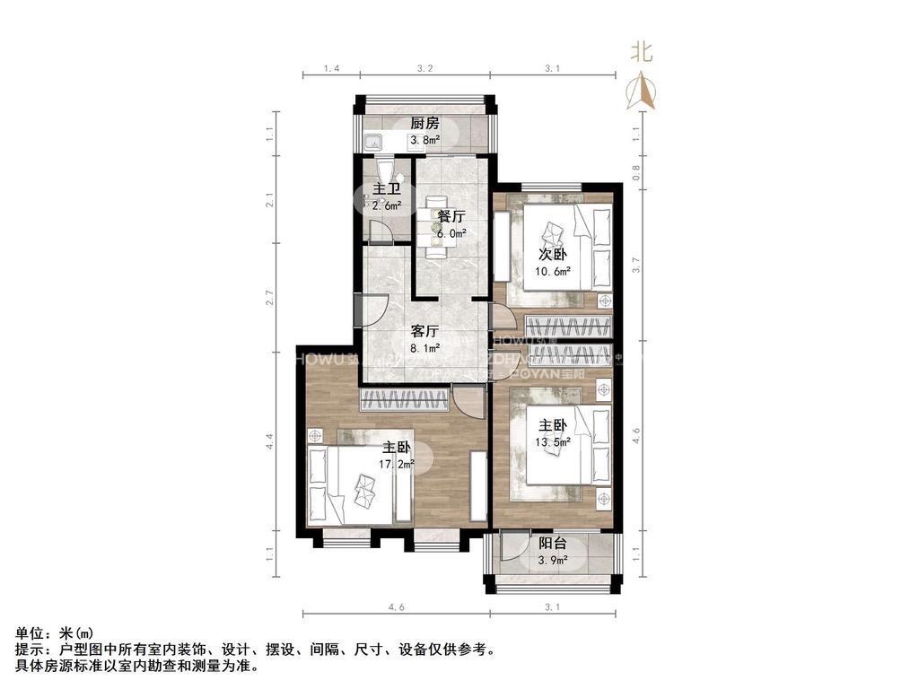 朝向南北 建筑面积84㎡