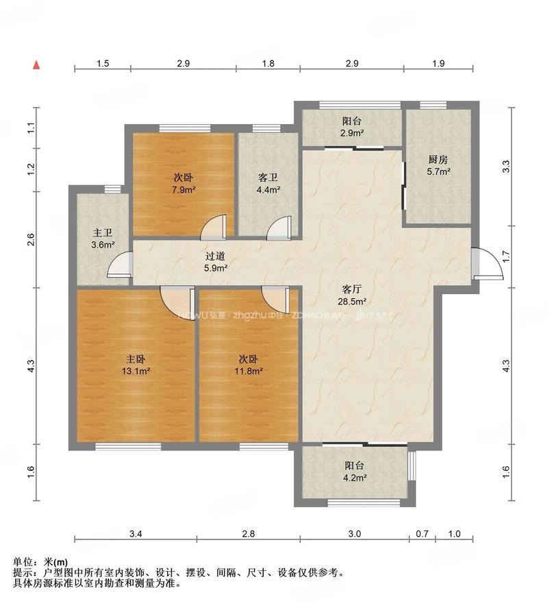 厅室3室2厅2卫1阳台