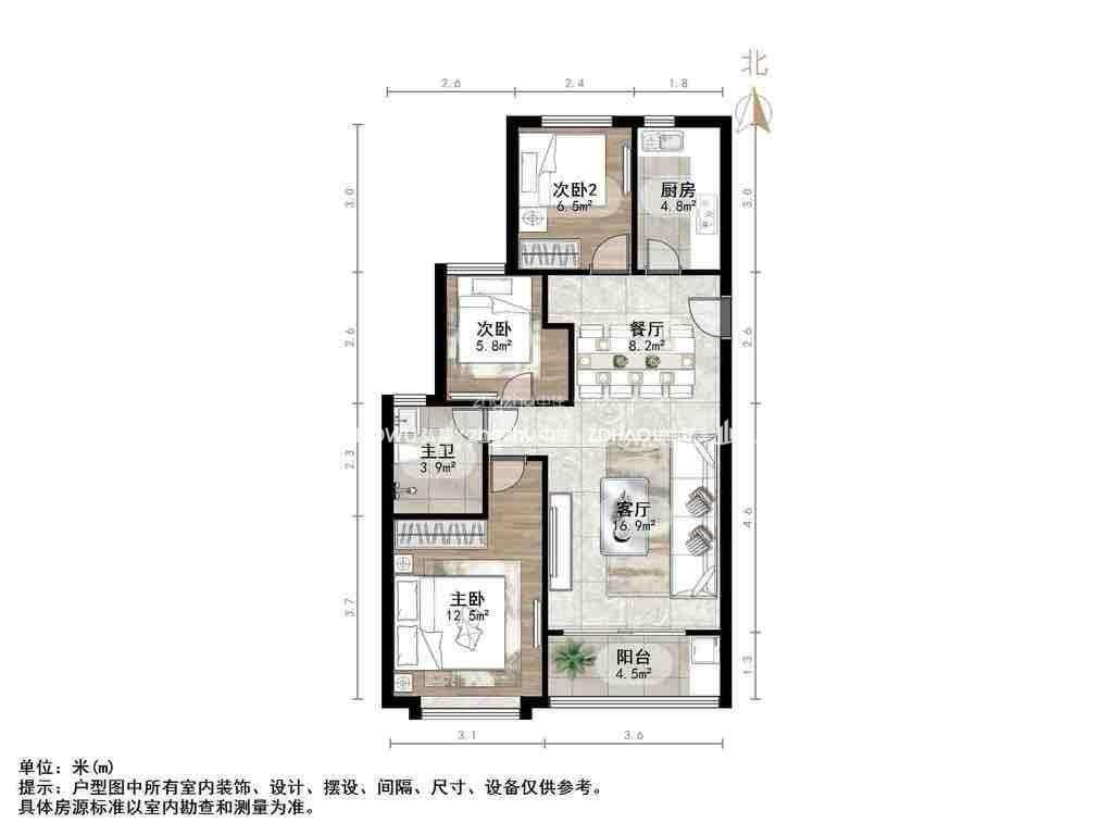 厅室3室2厅1卫1阳台