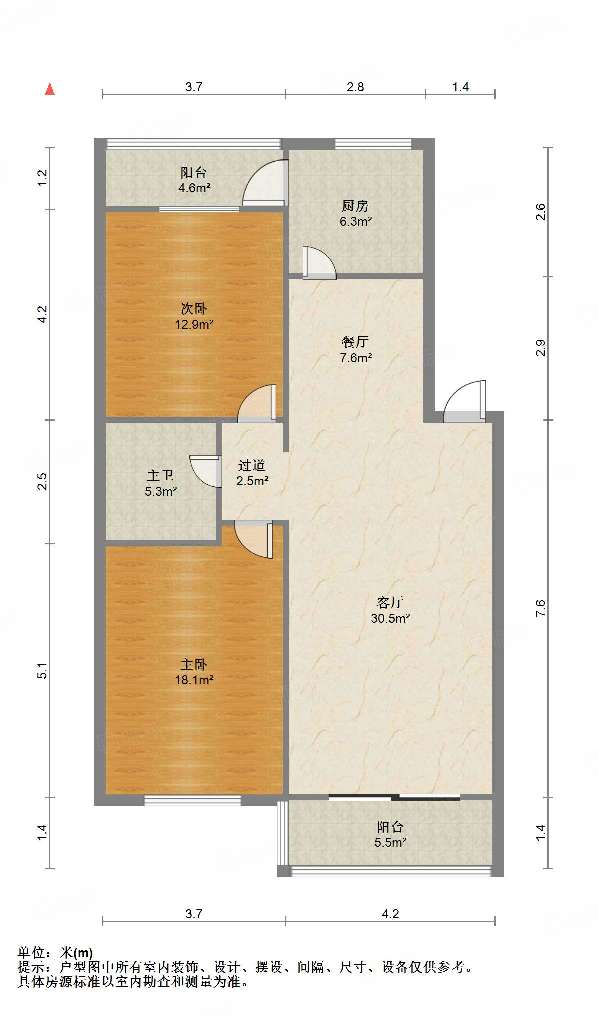 厅室2室2厅1卫1阳台
