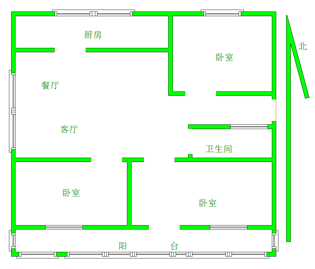 厅室3室2厅1卫1阳台