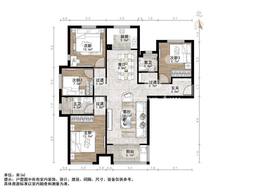 厅室4室2厅2卫1阳台