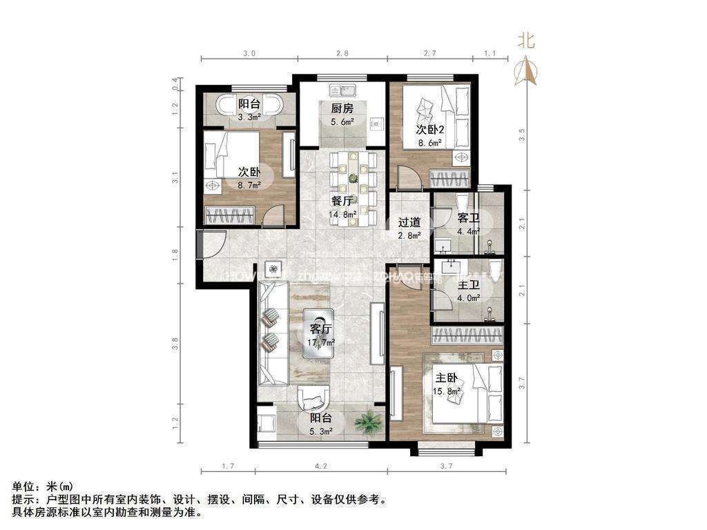 厅室3室2厅2卫2阳台
