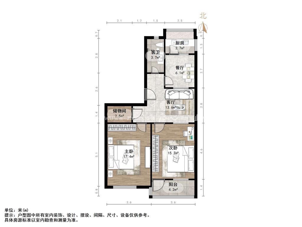 朝向南北 建筑面积73㎡