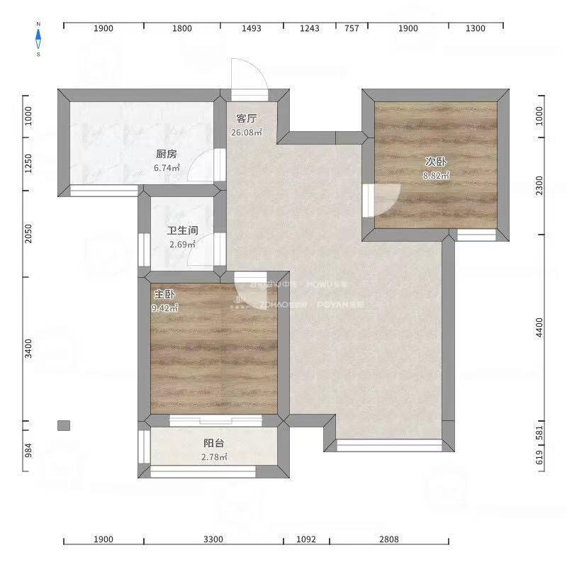 厅室2室2厅1卫1阳台