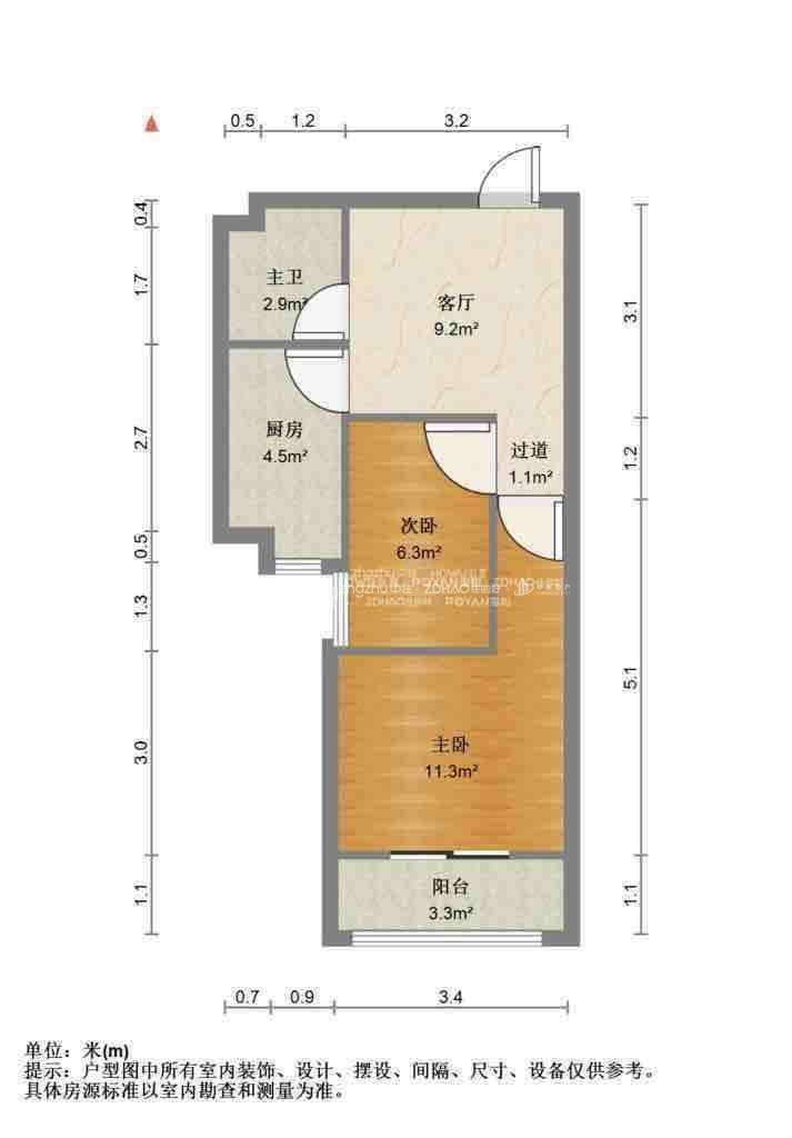 朝向南北 建筑面积60㎡