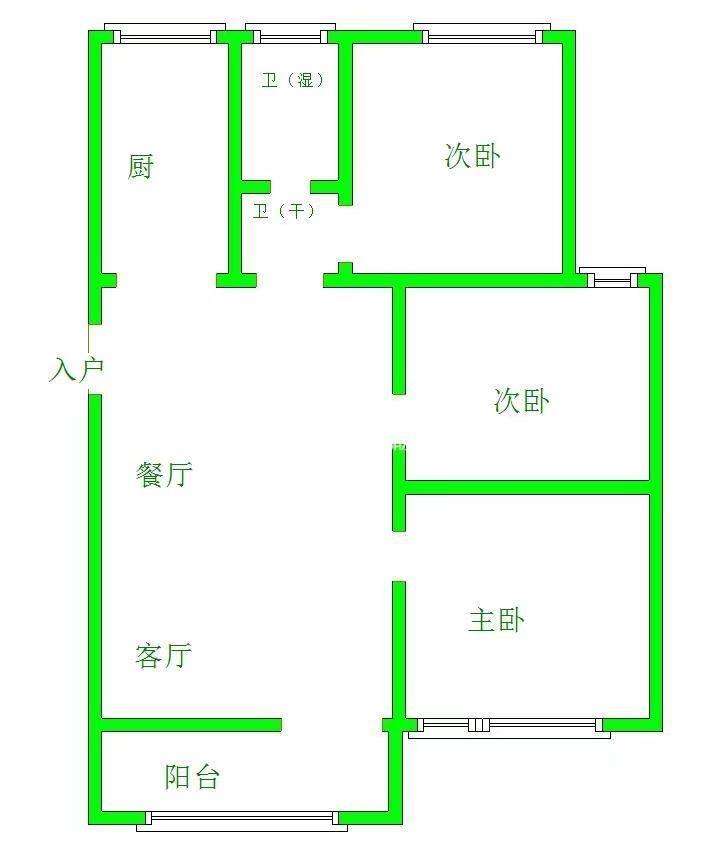 厅室3室2厅1卫1阳台