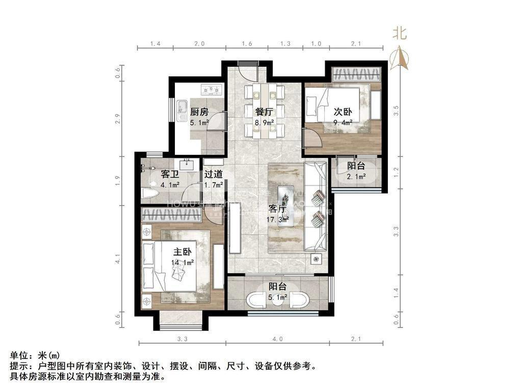 朝向南北 建筑面积92㎡