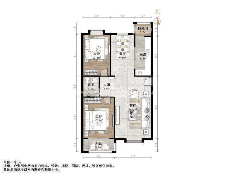 朝向南 建筑面积108㎡