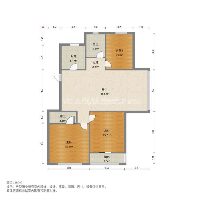 厅室3室2厅2卫1阳台