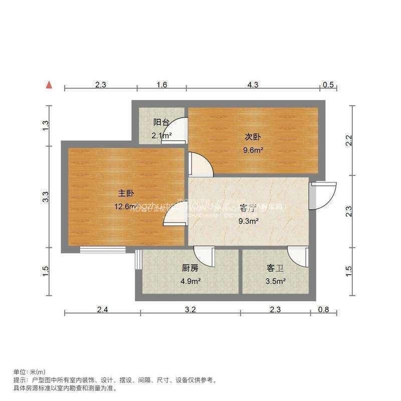 厅室2室1厅1卫1阳台