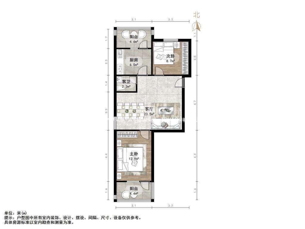 朝向南北 建筑面积71.71㎡