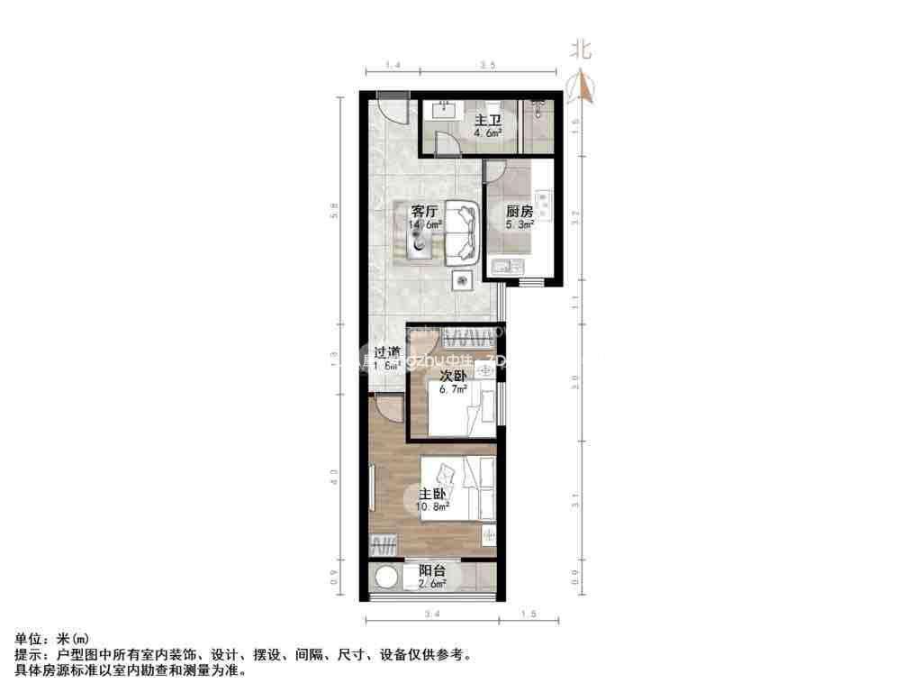 朝向南 建筑面积61㎡