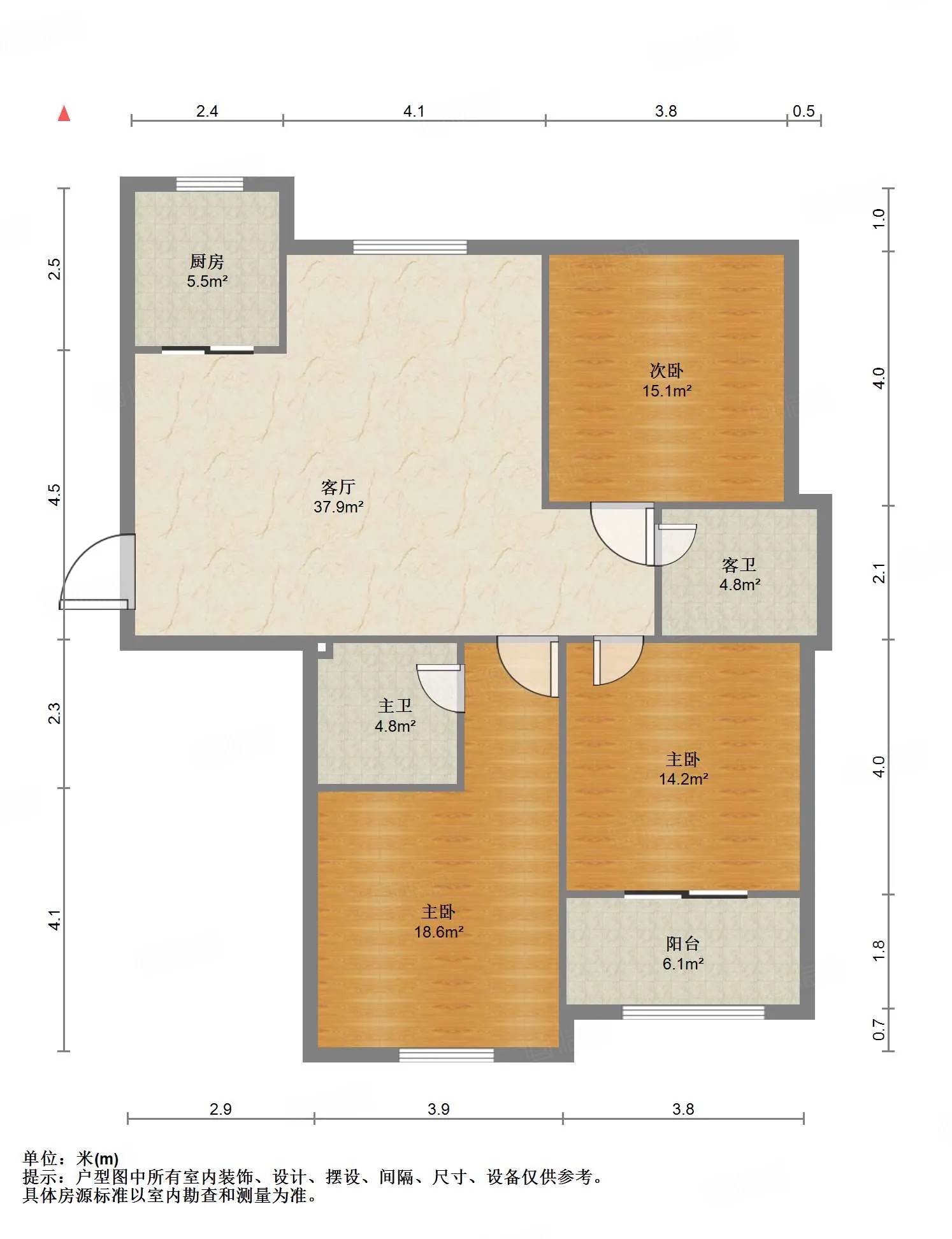 厅室3室2厅2卫1阳台
