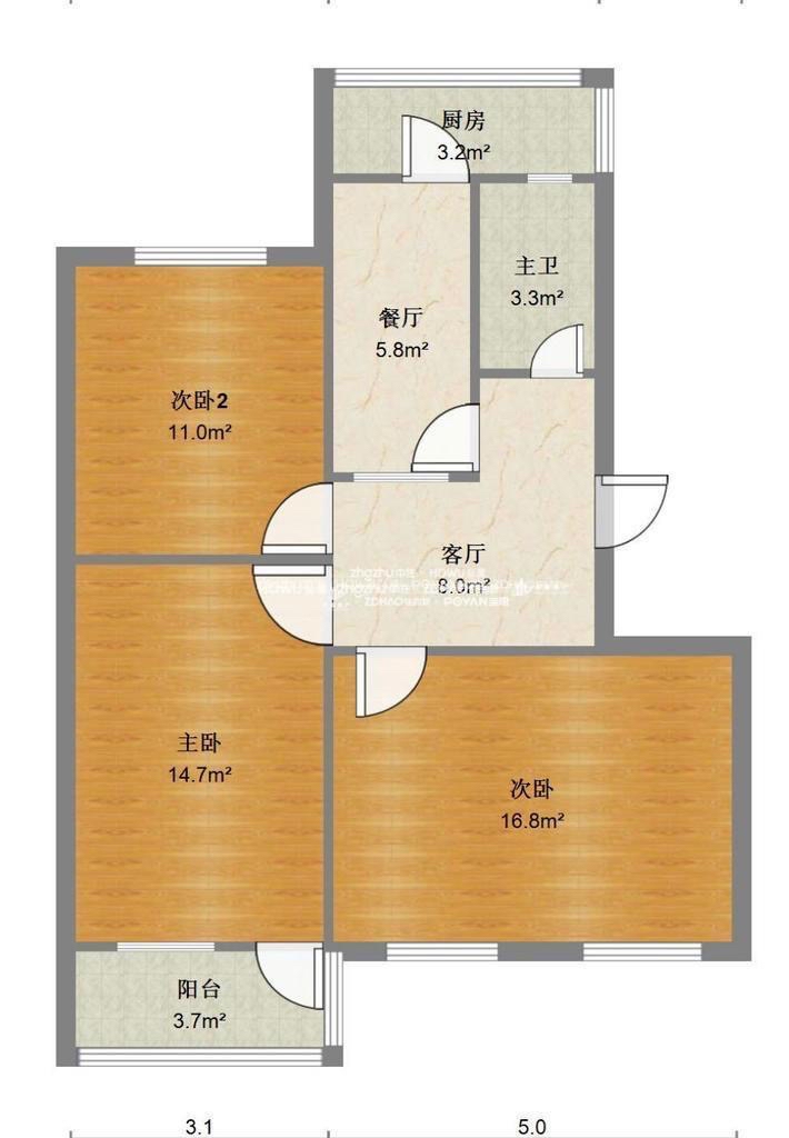 厅室3室1厅1卫1阳台