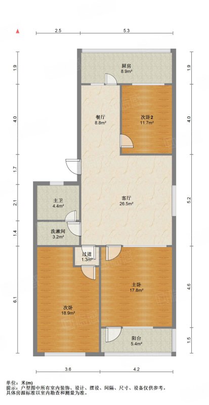 厅室3室2厅1卫1阳台