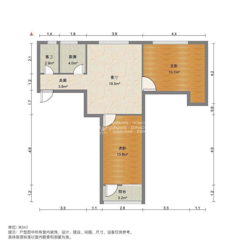 厅室2室1厅1卫1阳台