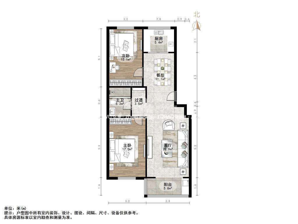 朝向南北 建筑面积103.97㎡