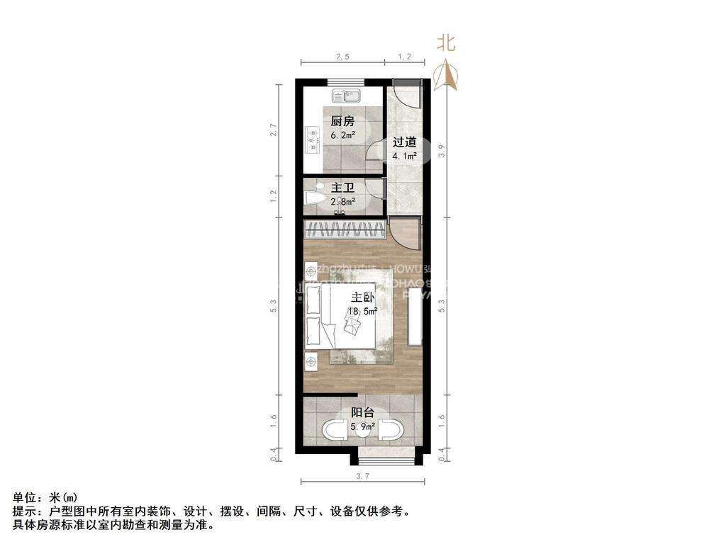 厅室1室1厅1卫1阳台