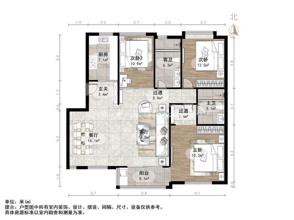 厅室3室2厅2卫1阳台