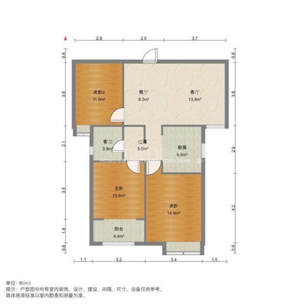 厅室3室2厅1卫1阳台
