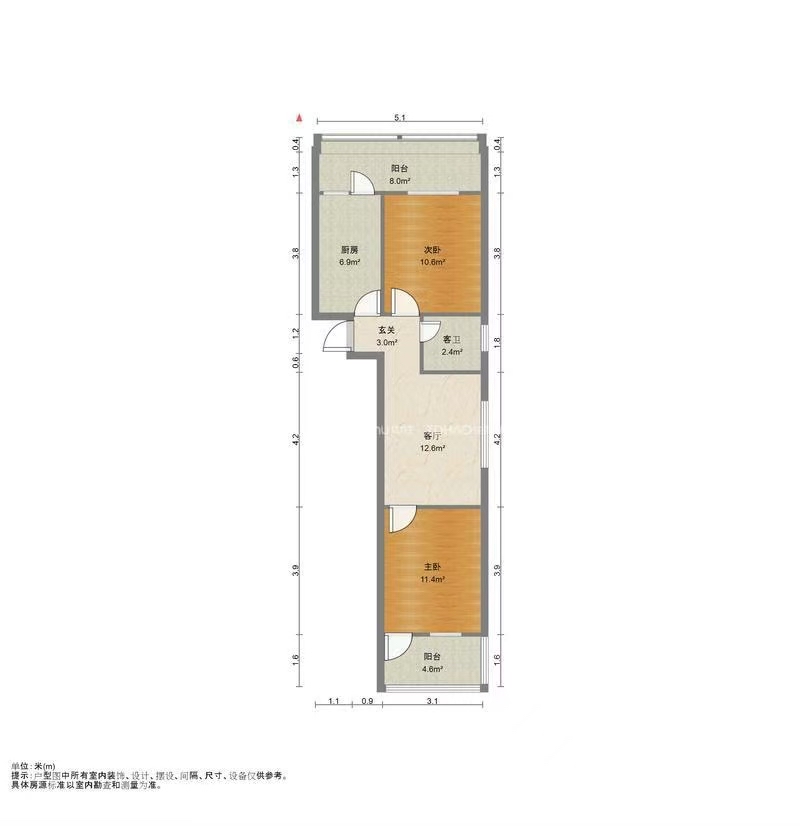 朝向南北 建筑面积72.8㎡