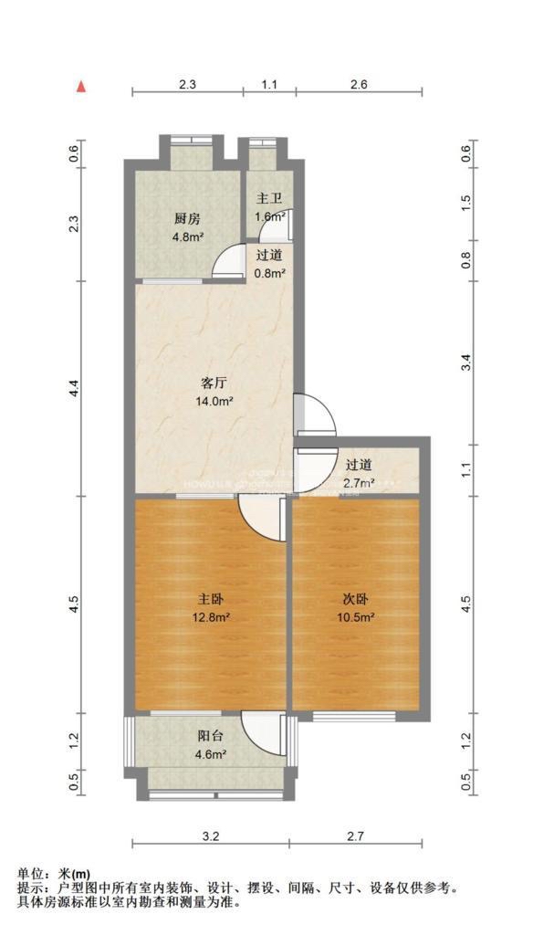 厅室2室1厅1卫1阳台