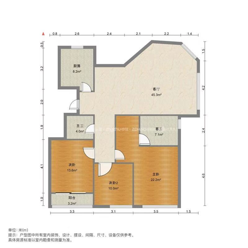 厅室3室2厅2卫1阳台