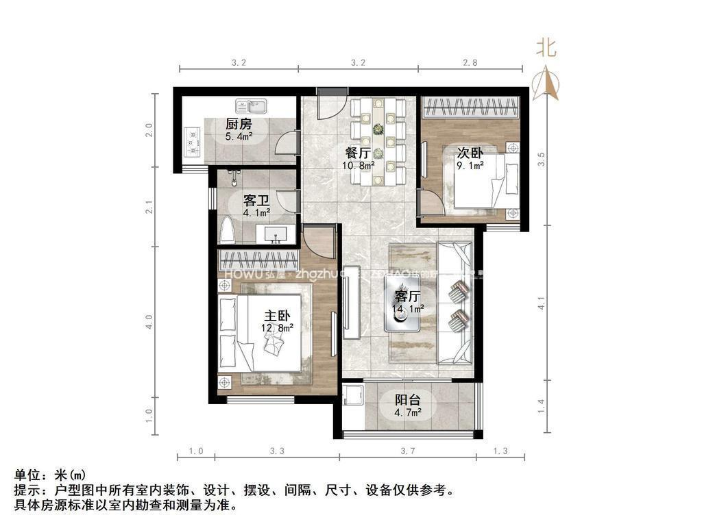 厅室2室2厅1卫1阳台