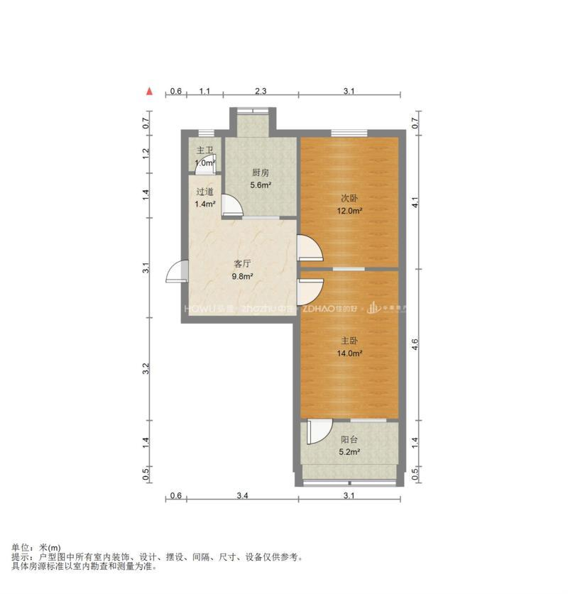 厅室2室1厅1卫1阳台