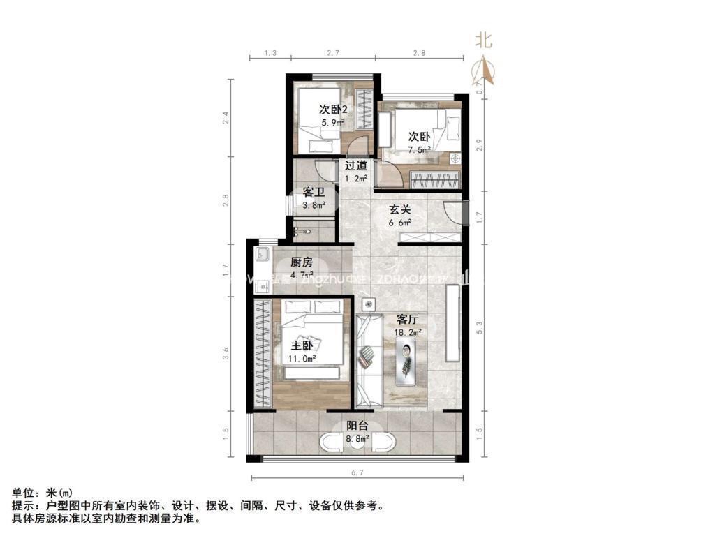 朝向南北 建筑面积107.54㎡