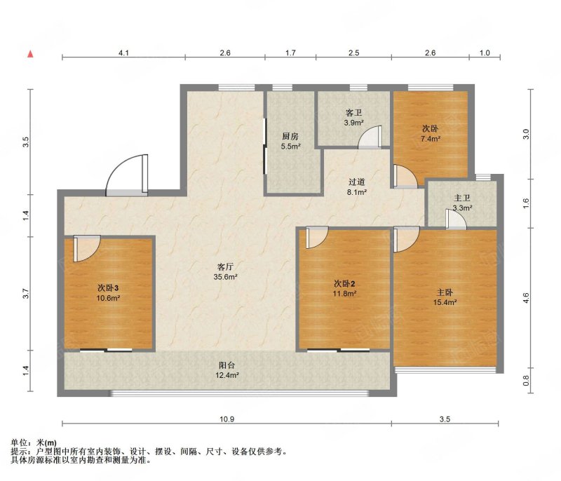 厅室4室2厅2卫3阳台