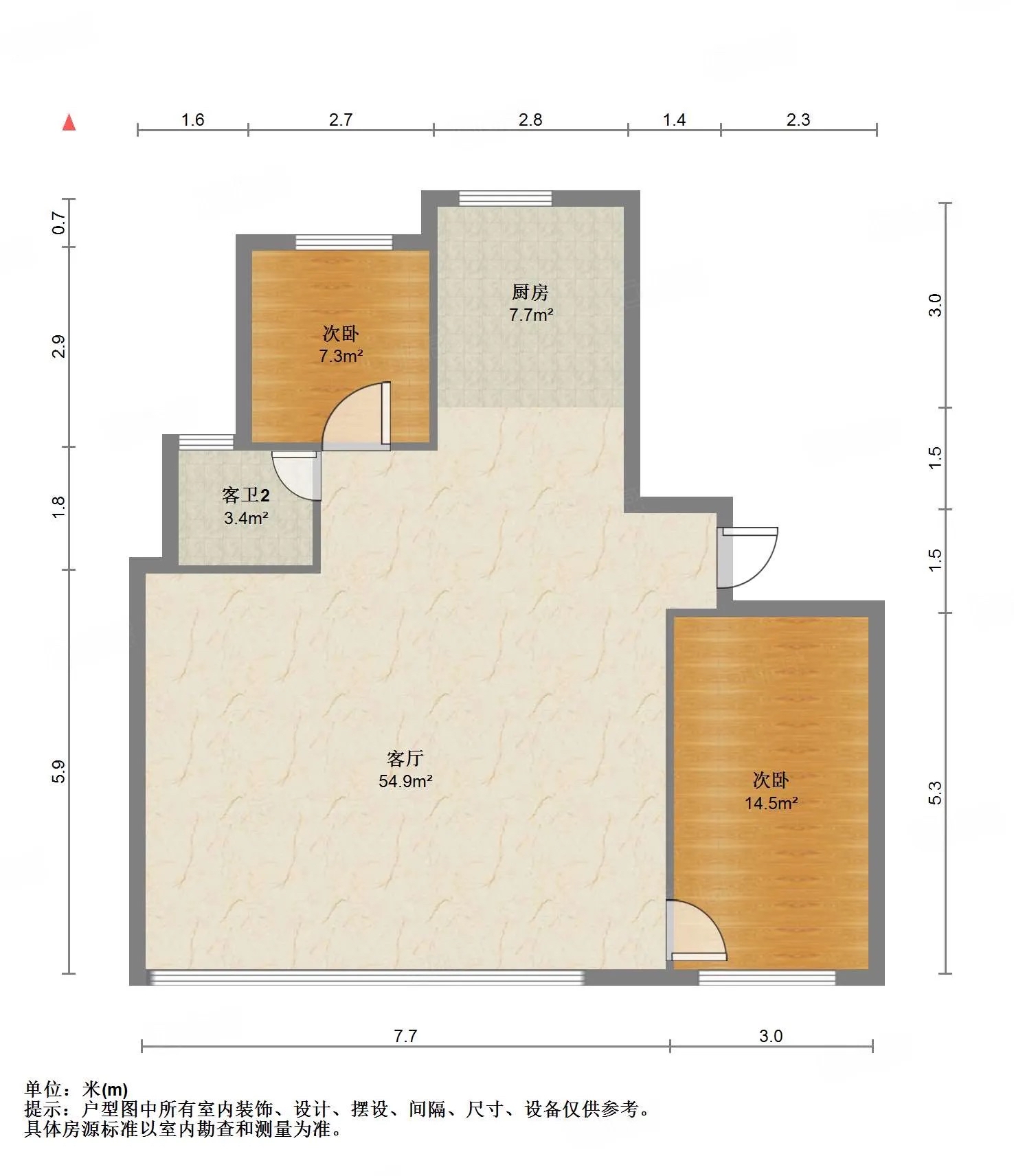 厅室3室2厅1卫1阳台