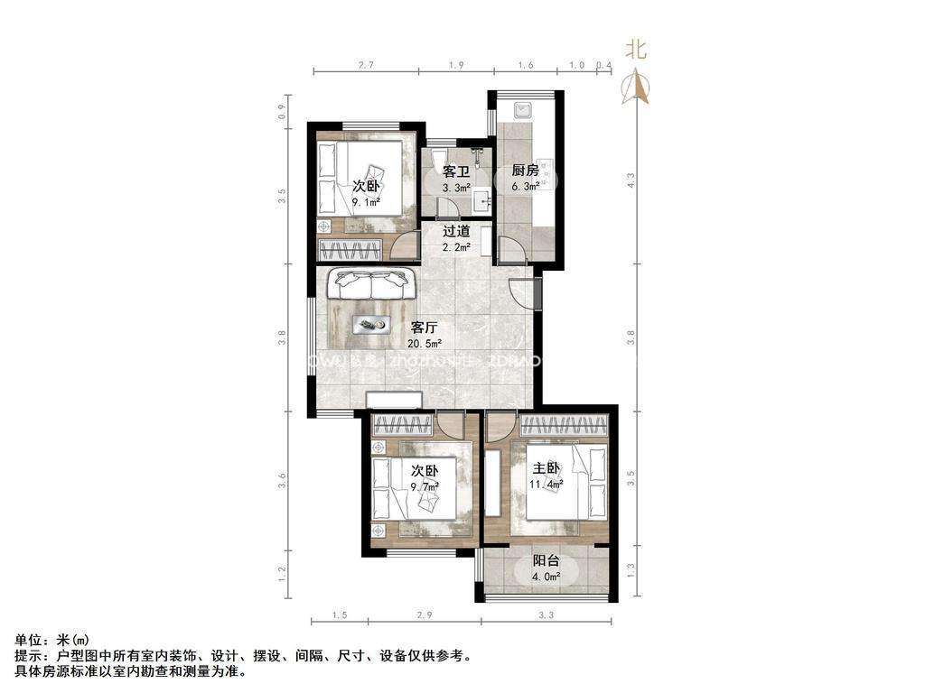 朝向南北 建筑面积95㎡
